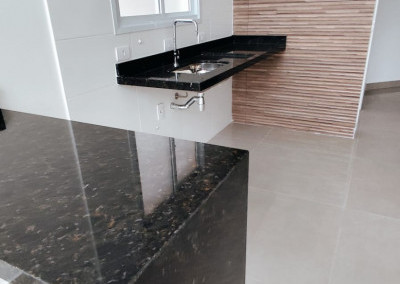 Pias e bancadas em granito Preto Crema